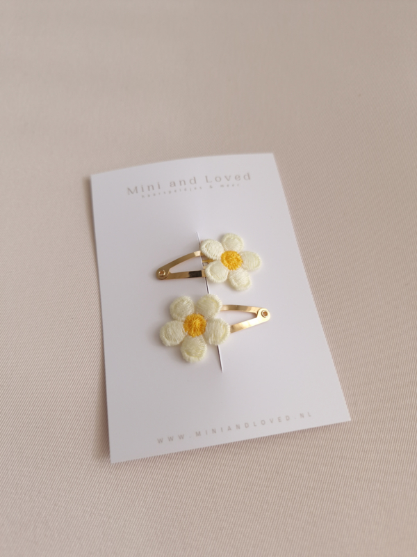 Off-white yellow flower clip (2 stuks)