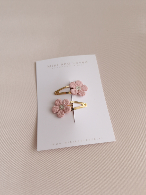 De haarspeldjes met bloem zijn bestelbaar met een goud of zilver klikklak speldje.