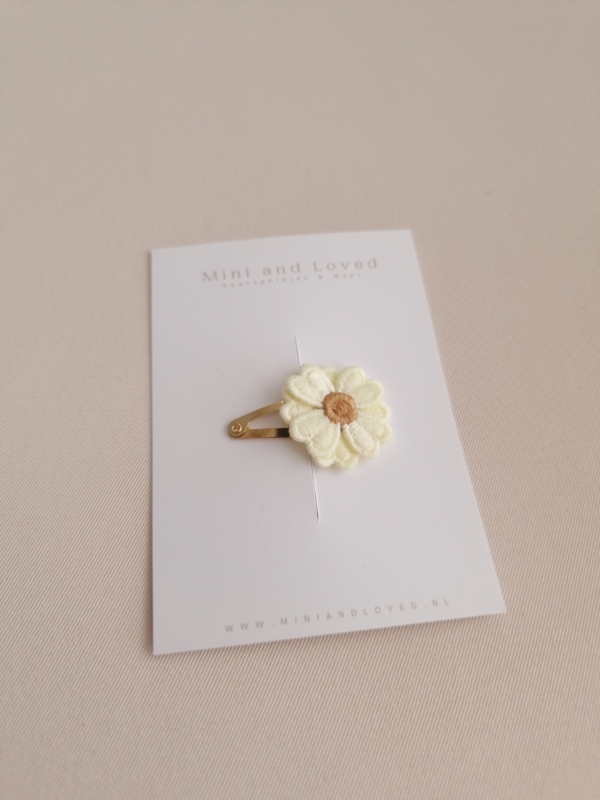 Het haarspeldje met bloem zijn bestelbaar met een goud of zilver klikklak speldje.